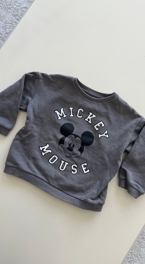 Gri renk, yuvarlak yaka kız sweatshirtü, uzun kollu ve bol kesim. Mickey Mouse baskılı ve düğme detaylı, yumuşak ve sıcak kumaştan yapılmıştır. 3-4 yaş