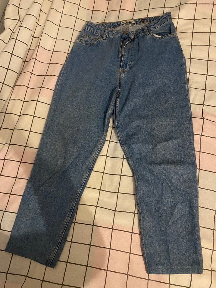 Gri renkte, midi boy, bol kesim kot pantolon. Rahat ve şık, günlük kullanıma uygun.