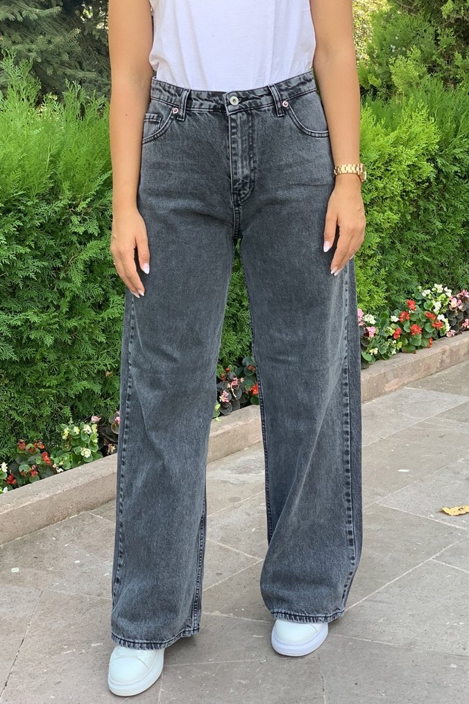Gri Midi Boy Bol Kesim Kadın Kot Pantolon