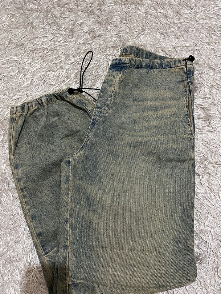 Gri denimden, bol kesim ve fermuarlı ceplere sahip kadın kot pantolon. Midi boy ve günlük rahat kullanıma uygun.