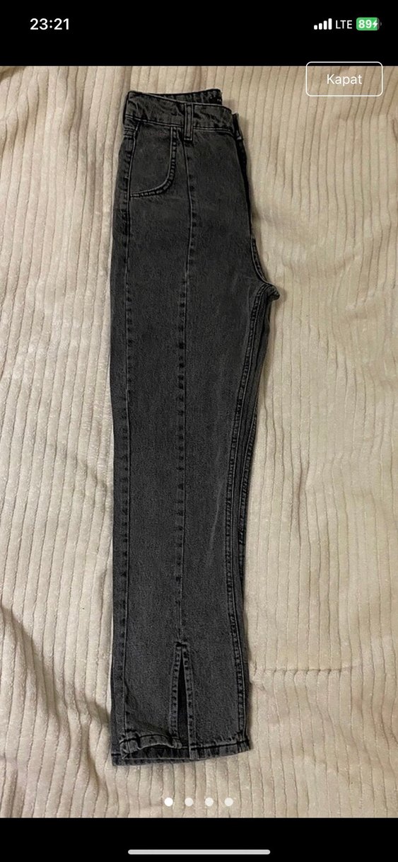 Gri renkte, normal boyda ve dilim detaylı kadın denim pantolon, rahat kesimiyle günlük kullanıma uygundur.
