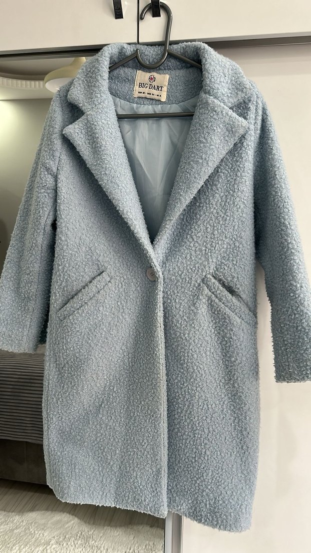 Gri midi boy, düğmeli kaban, yumuşak ve sıcak kumaştan yapılmıştır. Normal kesim ve uzun kolludur, günlük kullanıma uygundur.