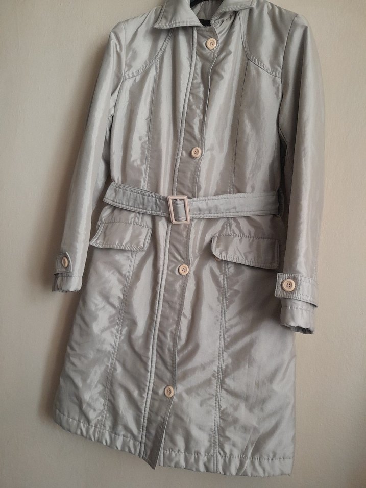 Gri renkte, kapitone,su itici kumaştan, midi boy kadın kaban. Düğmeli, uzun kollu ve regular fit kesime sahip, notched lapel yakalı, günlük sokak stili için uygundur. Göğüs:100cm Boy:93cm Kol Boyu:58cm