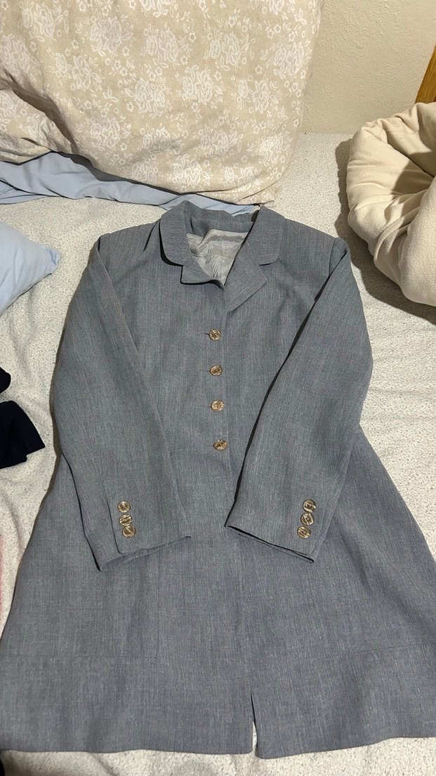 Gri Midi Boy Düğmeli kumaş ceket