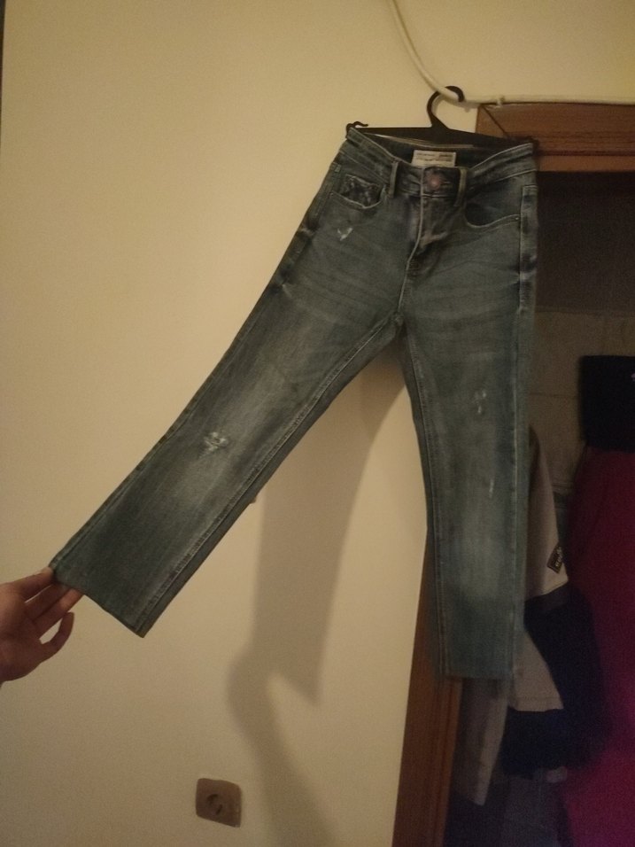 Gri renkli, midi boy ve regular fit kesime sahip denim jean. Tokalı detayıyla günlük sokak stiline uygun.