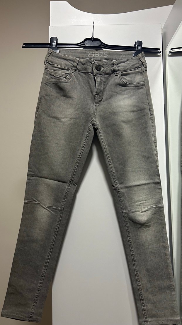 Bu gri denim pantolonlar, normal kesim ve midi boyda, günlük kullanım için sokak stilinde zahmetsiz şıklık sunar.