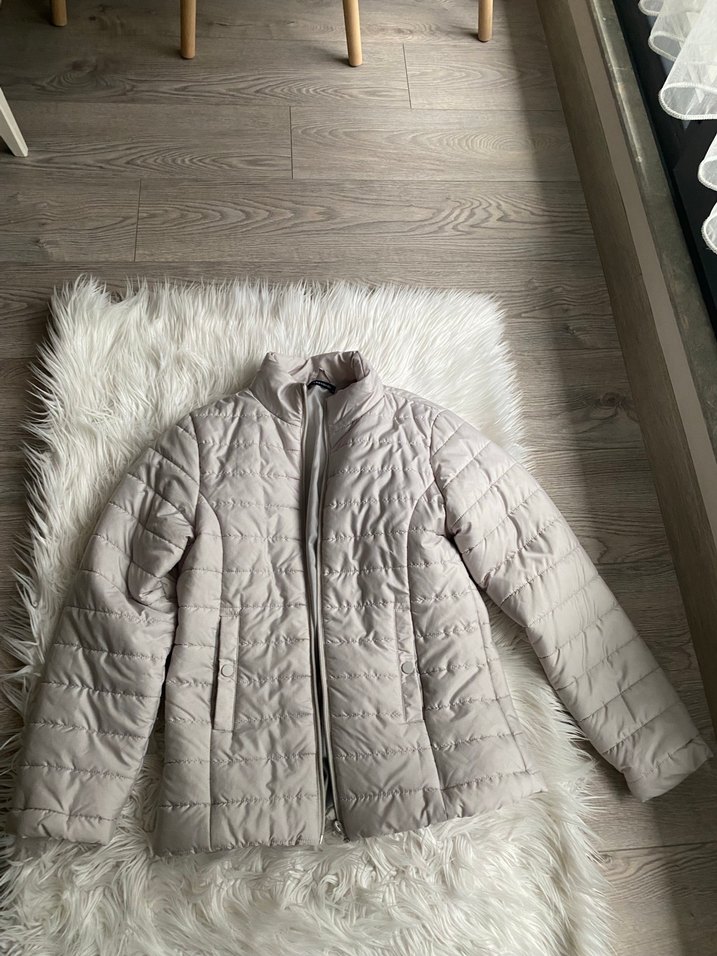 Yumuşak ve sıcak kumaştan, yüksek yakalı ve uzun kollu gri kısa kadın mont. Düz desensiz, kürk detaylı, rahat kesim. Günlük kullanım için uygundur.