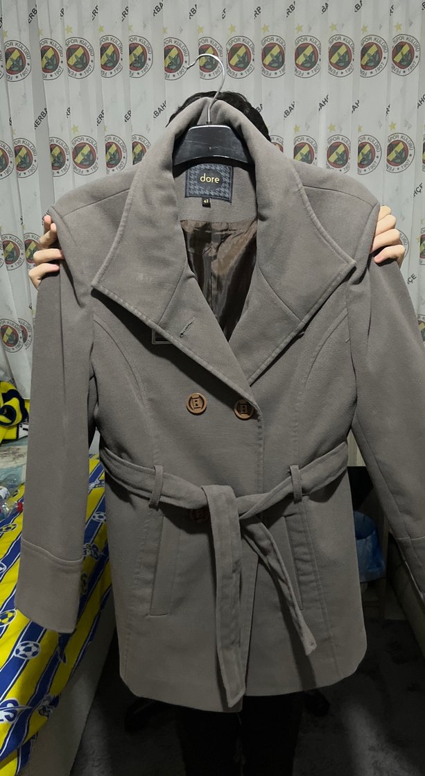 Gri renkli, düğmeli ve kemerli midi boy kadın kaban. Uzun kollu, regular fit ve yumuşak, sıcak tutan kumaştan üretilmiştir. Sokak stiline uygun.