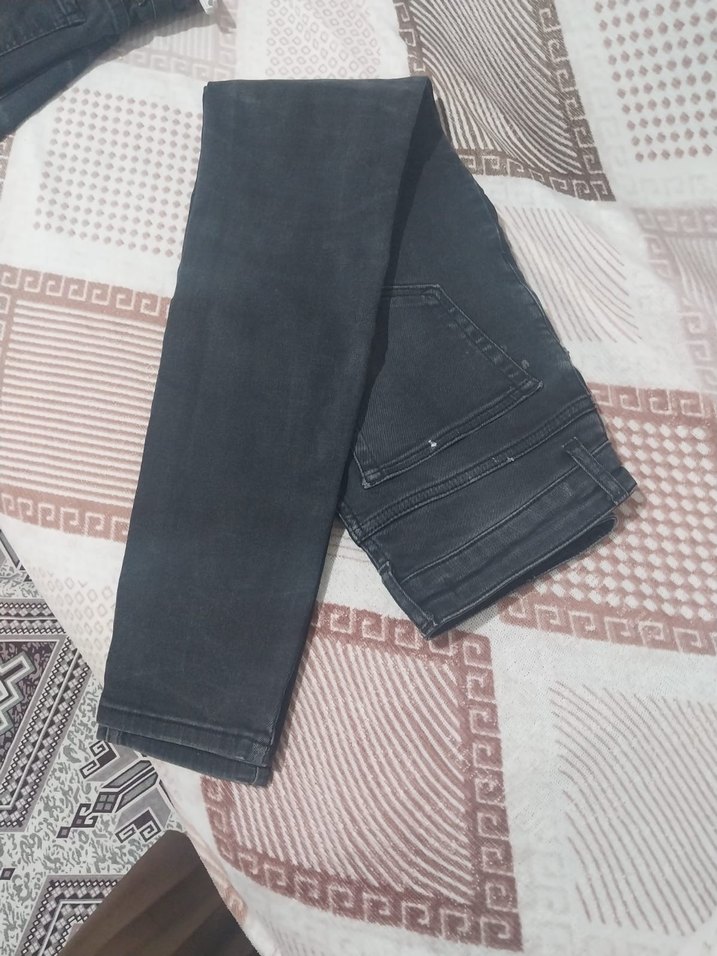 Gri renkte midi boy, regular fit kot pantolon. Kemer detayıyla günlük rahat sokak stiline uygun bir model.