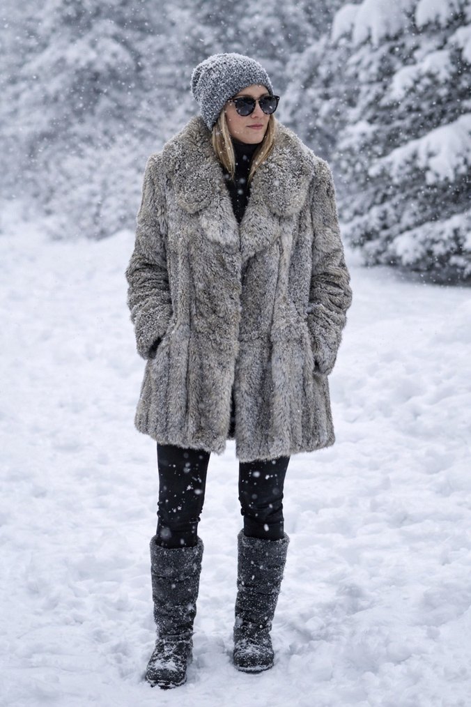 Gri Midi Boy Peluş Kadın Kaban