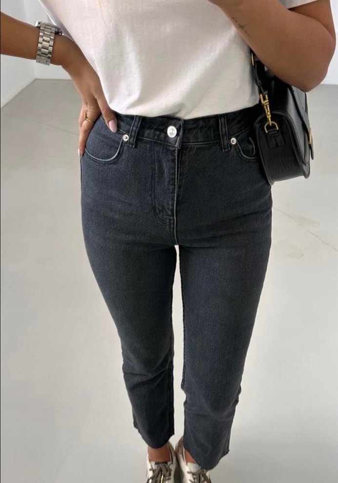 Gri Midi Boy Regular Fit Denim Kadın Jean