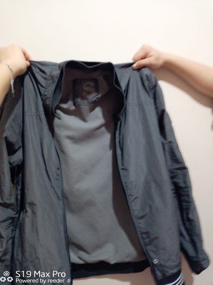 Gri midi boy, yüksek yakalı erkek ceket, bol kesim ve uzun kolludur. Fermuarlı önü ve sentetik kumaşıyla gündelik dış mekan kullanımı için uygundur. Desensiz ve sokak stiline uygundur. Üzerinde 'S19 Max Pro' etiketi bulunur.
