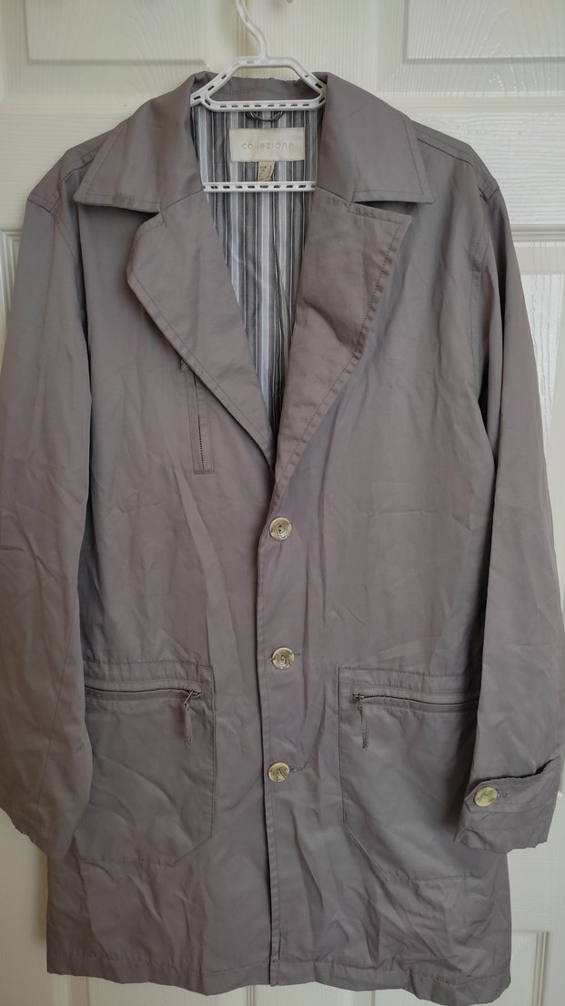 Gri renkli, keten kumaştan yapılmış ceket, düğmeli ve notched yaka detaylıdır. Uzun kollu, normal kesim ve önünde fermuarlı cepleri vardır.