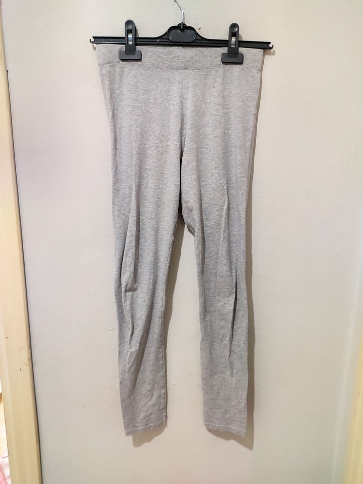 Gri renkte, yumuşak keten kumaştan yapılmış, düz ve desen içermeyen midi boy çocuk tayttır. Rahat ve şık athleisure tarzıyla günlük sokak giyimine uygundur. ♀️arka kısmında hafif deformesi vardır