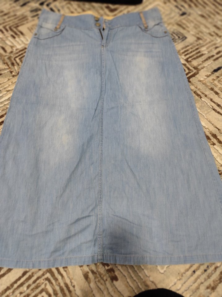 Gri renkli midi uzunlukta denim kadın eteği, bol kesim ve kemerli bel detayıyla günlük ve bohem tarz sunar.