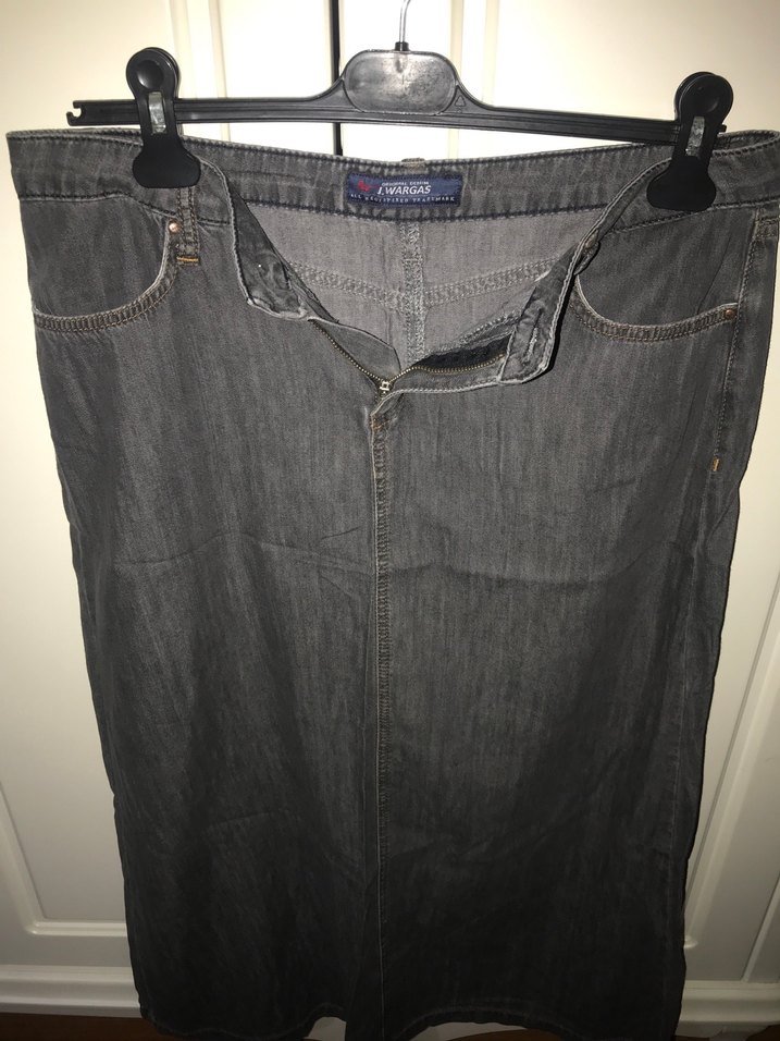 Gri midi uzunlukta denim kadın eteği, rahat kesimi ve desensiz tasarımıyla günlük kullanıma uygundur. Zarif ve sade bir şıklık sunar.