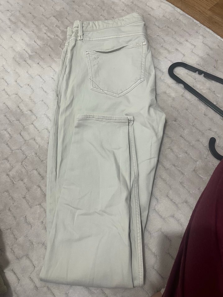 Gri renkte, midi boy ve bol kesim denim pantolon. Günlük kullanım için rahat ve şık bir seçenek sunar.