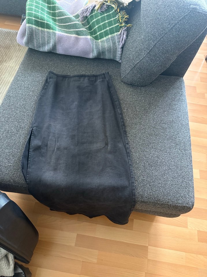 Gri midi uzunlukta, fitted kesimli ve drapeli denim kumaştan yapılmış sade ve desensiz etek. Günlük kullanıma uygundur.