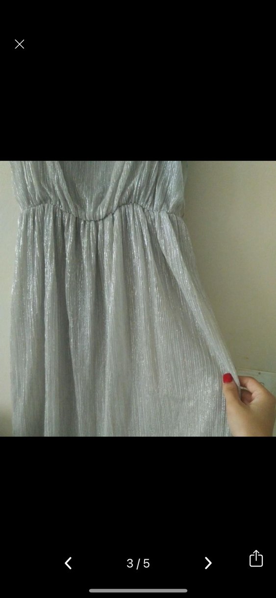 Gri Midi Drapeli Kadın Abiye Elbise
