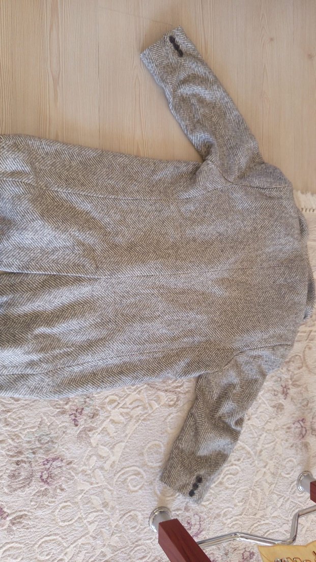 Gri midi uzunlukta, keten kumaştan yapılmış, düğmeli ve kesik yaka detaylı erkek ceketi. Uzun kollu ve rahat kesimdir, gündelik kullanıma uygundur.