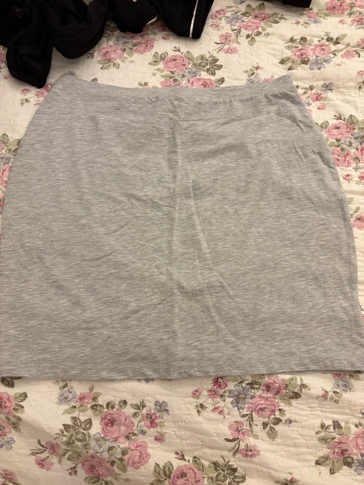 Gri renkli eteği, rahat kumaştan midi boy ve bol kesim olarak tasarlanmıştır. Desensiz sade görünümü ile konforlu ve şık bir seçenektir.