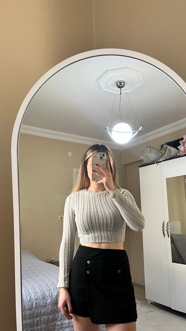 Gri renkte, fitilli ve midi boyda, uzun kollu, boğazlı kadın triko. Trendy ve rahat bir stil sunar. Bana dar geldiği için satıyorum. S beden kalıbı dar.