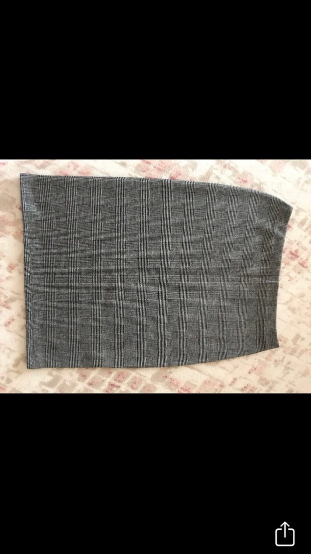 Gri midi hamile eteği, düzenli kesim ve pilili detaylara sahip, yumuşak sentetik kumaştan üretilmiştir, ofis kullanımı için uygundur.