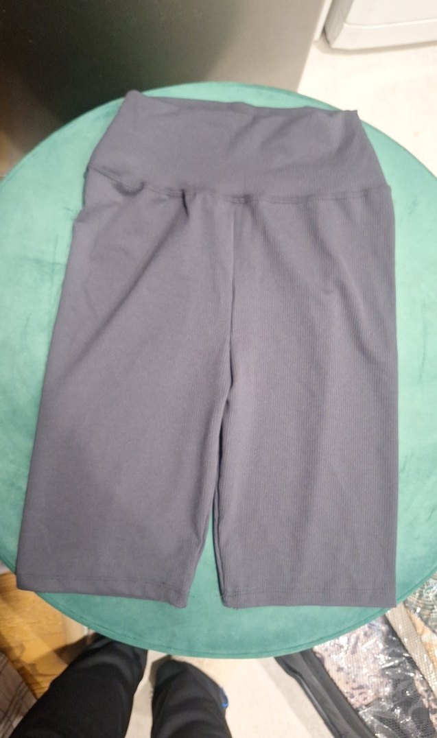 Gri renkte, midi boy ve vücuda oturan hamile şortu, yumuşak sentetik kumaştan üretilmiş, sportif ve trend casual tarz sunar.