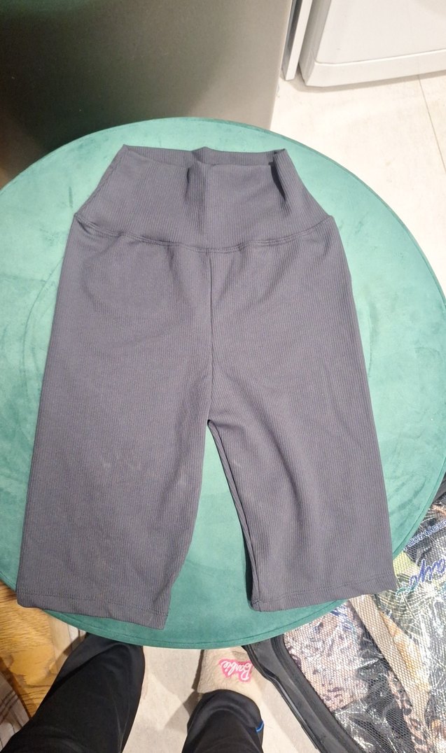 Yumuşak sentetik kumaştan yapılmış, rahat kesim gri midi hamile şortu, spor ve günlük kullanıma uygun şık ve konforlu.