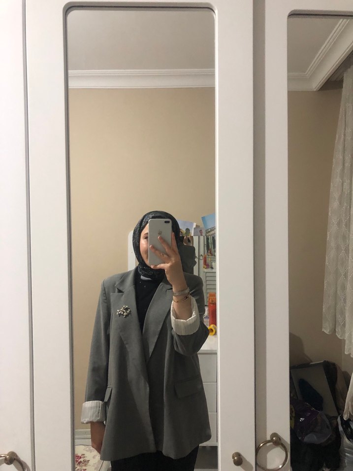 Gri Midi Kadın Blazer Ceket
