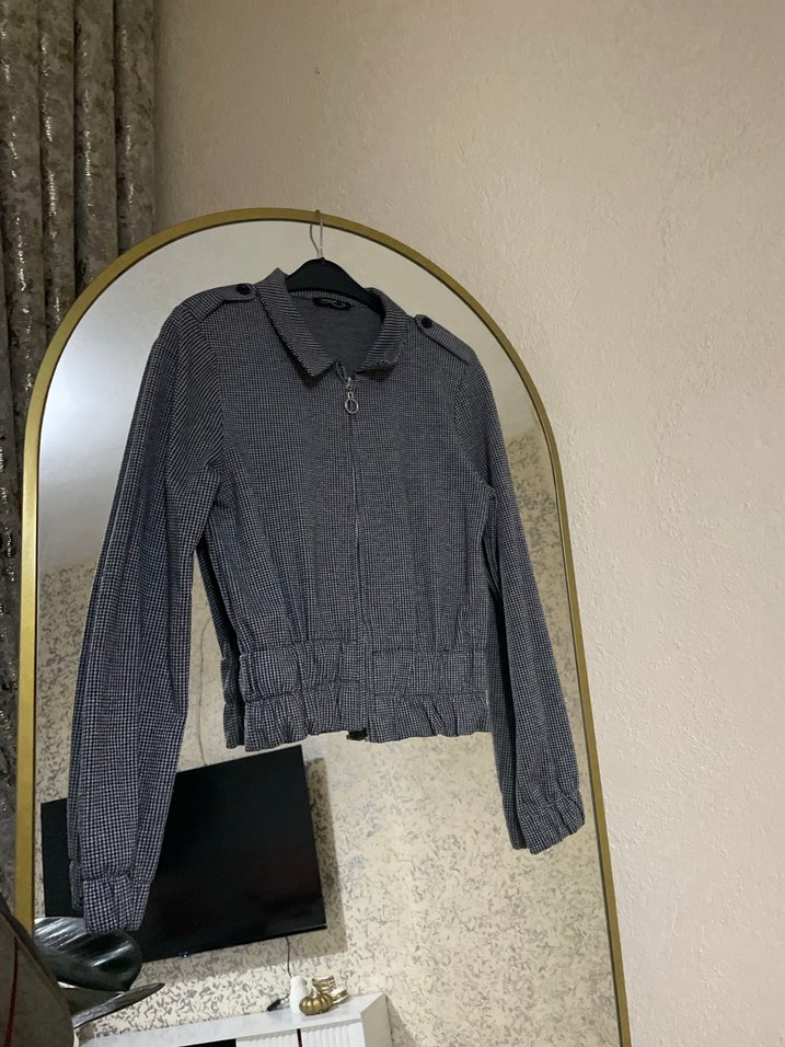 Gri renkli, uzun kollu, düğmeli ve keten kumaştan yapılmış, günlük kullanıma uygun midi uzunlukta kadın ceketi. Notch yaka ve dar kesime sahiptir.