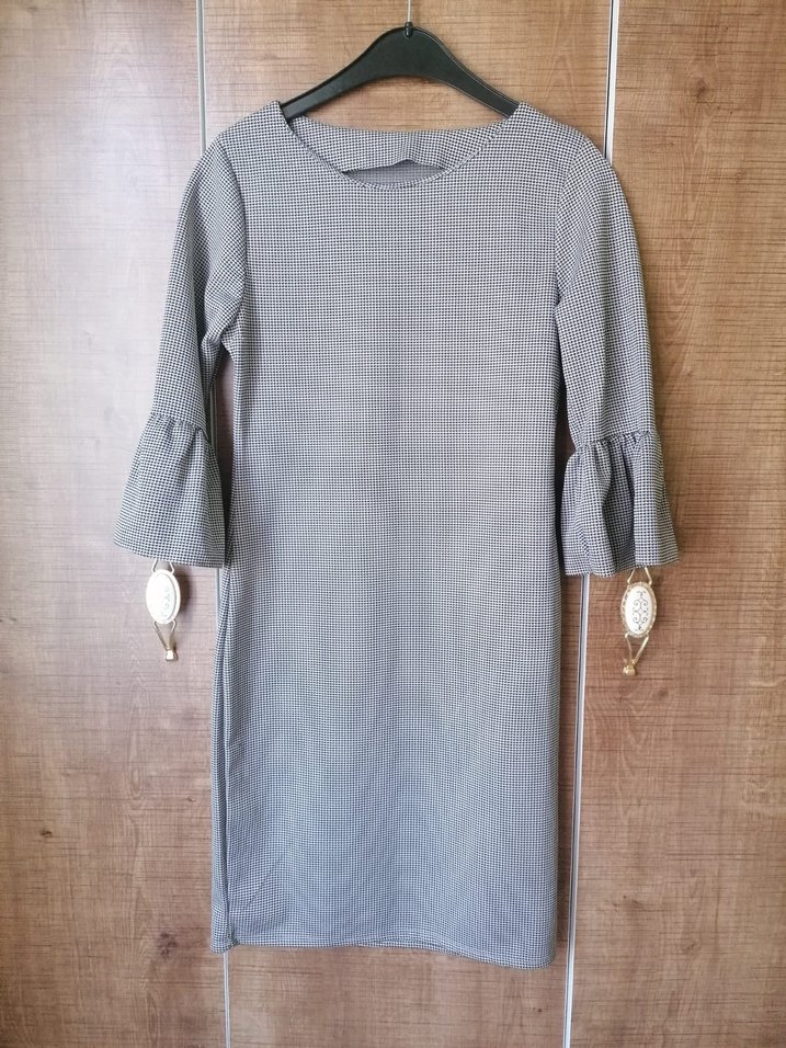 Gri Midi Kadın Elbise, Uzun Kollu, Pile Detaylı
