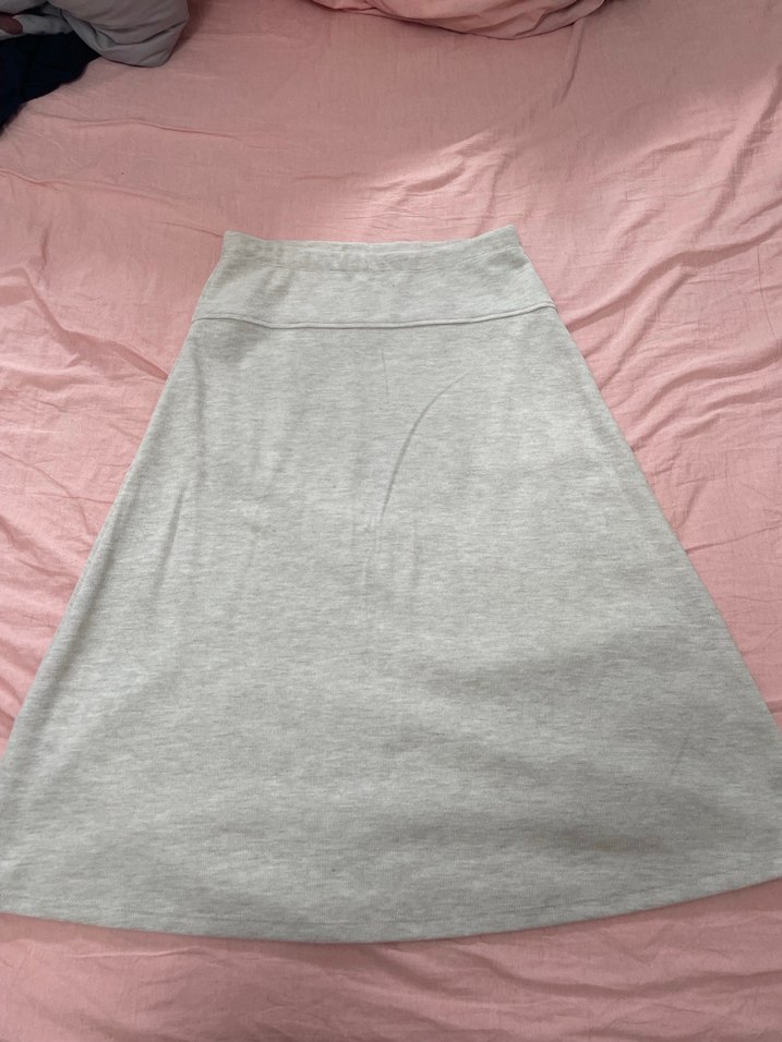 Gri midi kadın eteği, yumuşak sentetik kumaştan, rahat bol kesimlidir. Günlük kullanım için normcore tarzında, zahmetsiz şıklık sunar.