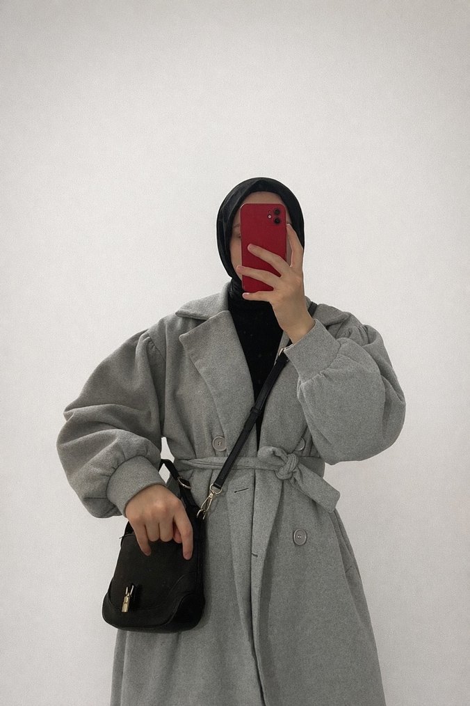 Gri Midi Kadın Kaban