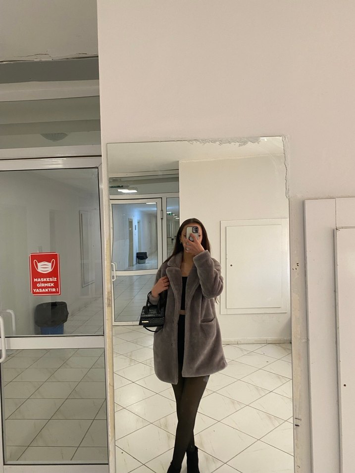 Gri midi kadın kaban, bol kesim, uzun kollu ve kesik yaka detayına sahiptir. Yumuşak ve sıcak kumaştan üretilmiş, rahat ve şık bir görünüm sunar. marka temsili