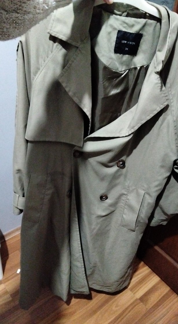 Gri midi uzunlukta keten kumaştan, düğmeli, loose fit kadın trençkot. Notch yaka ve uzun kolludur, günlük kullanıma uygundur.