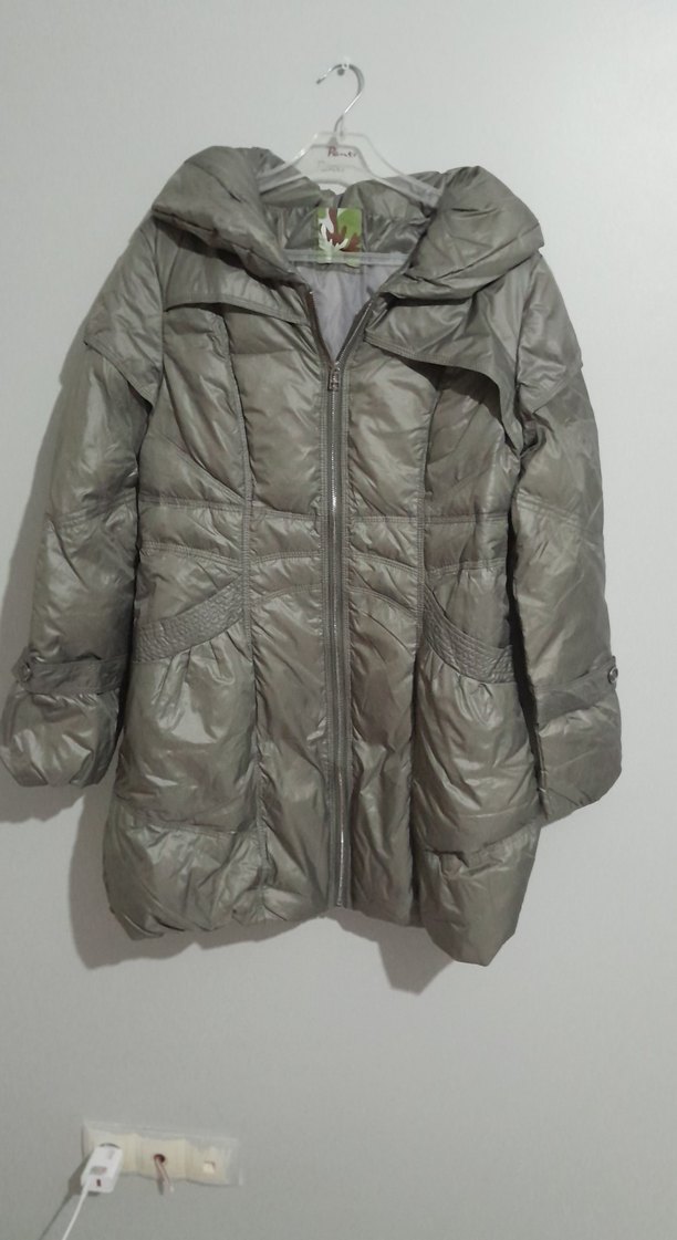 Gri renkli, fermuarlı ve uzun kollu kadın kışlık mont. Notlu yaka ve normal uzunlukta, rahat ve şık bir görünüm sunar. boy83 iki kol arasi 47