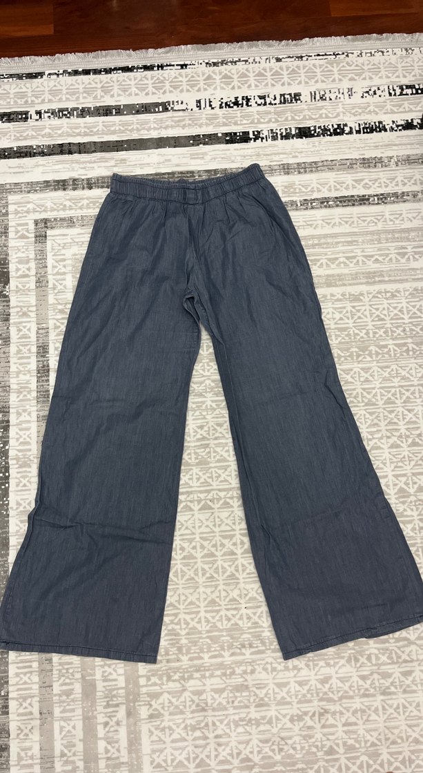 Gri renkte, midi boyda, bol kesim kot pantolon. Günlük kullanıma uygun, desen içermeyen rahat ve şık bir model.