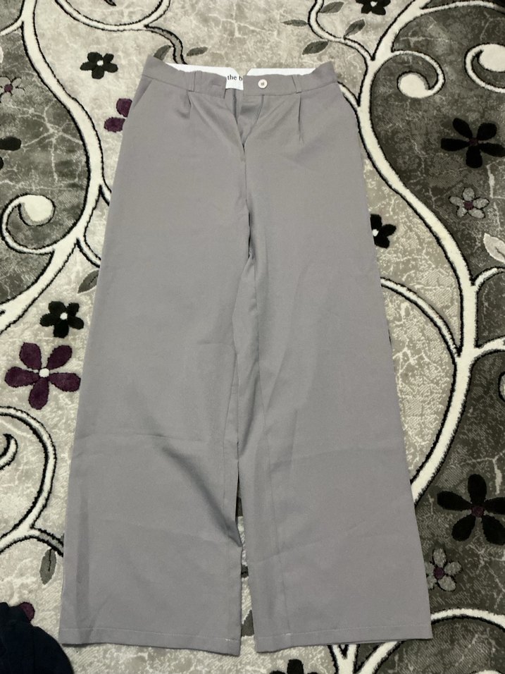 Gri renkli, midi boy, kadın kumaş pantolon. Rahat kesimi ve düz tasarımıyla gündelik kullanıma uygun, şık ve trend bir stil sunar.