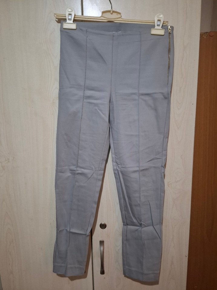 Gri renkli, midi boy kadın pantolon, regular fit ve sentetik kumaştan. Yanında fermuarlı, desen içermeyen tasarımıyla ofis için uygun. Trendy casual tarzı için ideal