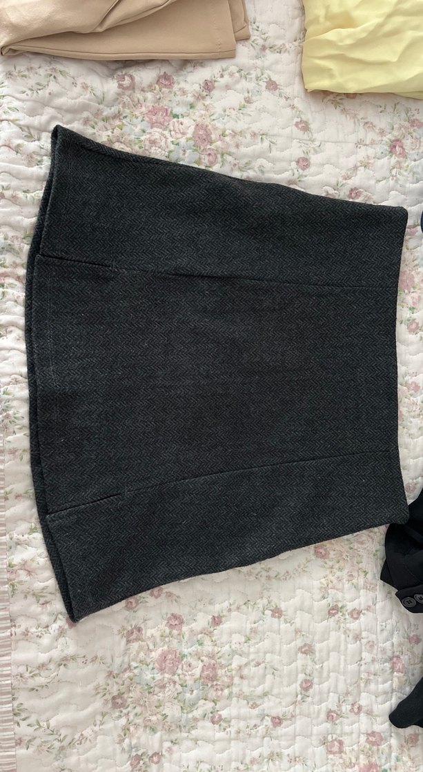 Gri renkli, sentetik kumaştan yapılmış, volan detaylı, rahat ve sade tarzda, günlük kullanıma uygun, vücuda oturan midi mini etek.