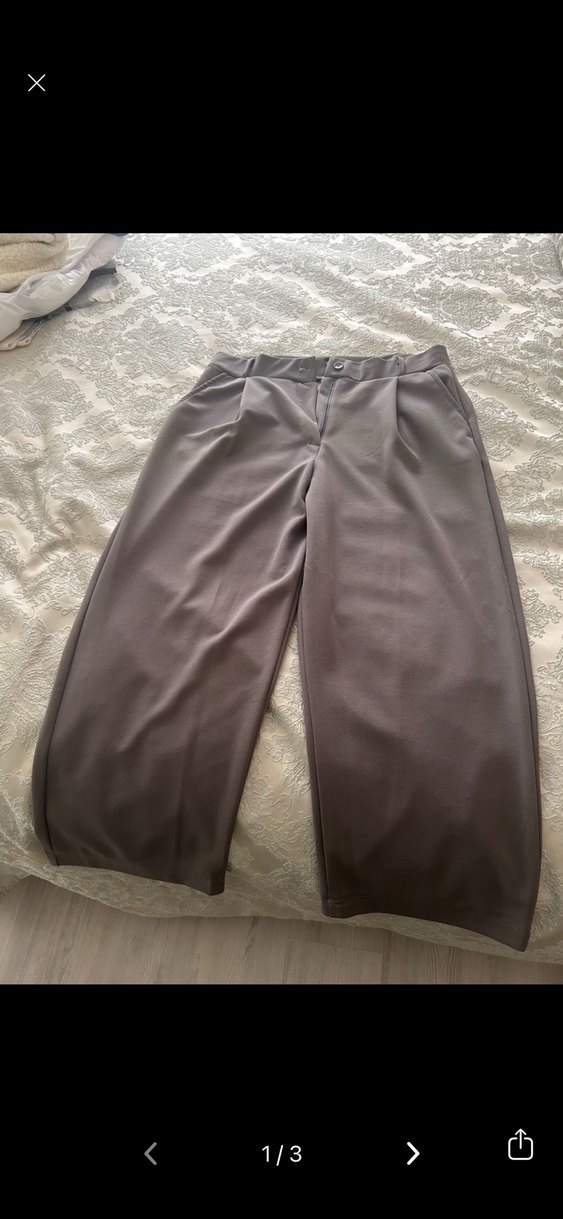 Gri renk, midi boy, rahat kesim kumaş pantolon. Desensiz, günlük ve rahat tarz için uygun. Şık ve zahmetsiz stil sunar. Hiç giyilmedi yenidir ama etiket yok