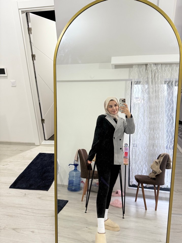 Gri renkte, normal boy midi uzunluğunda, uzun kollu ve kesik yaka detaylı kadın takım elbise. Yumuşak ve sıcak kumaştan, bağlama desenli, ofis için şık ve rahat bir seçim.
