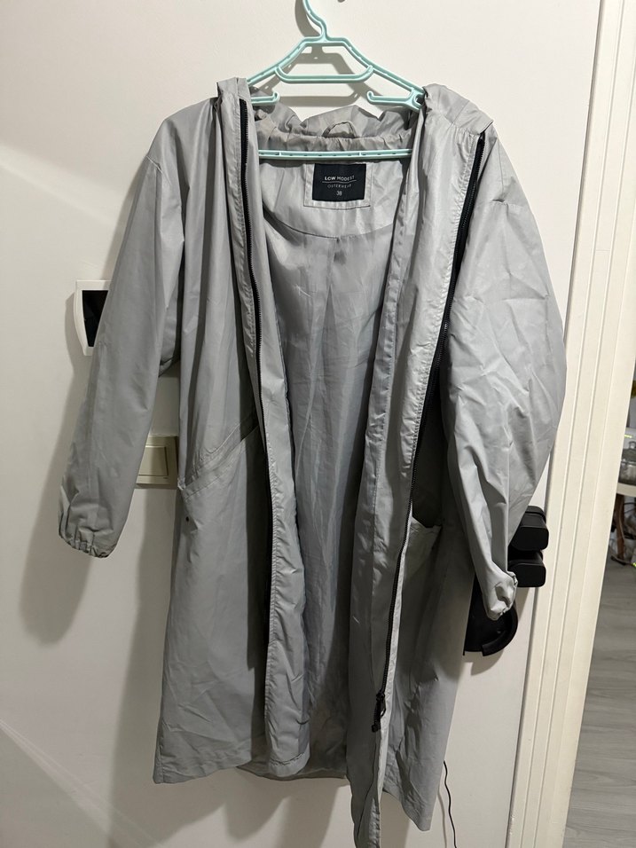 Gri midi uzunlukta, fermuarlı ve bol kesim kadın yağmurluk. Uzun kollu, yakası notch detaylı, sentetik kumaştan üretilmiştir. Sokak stiline uygun.