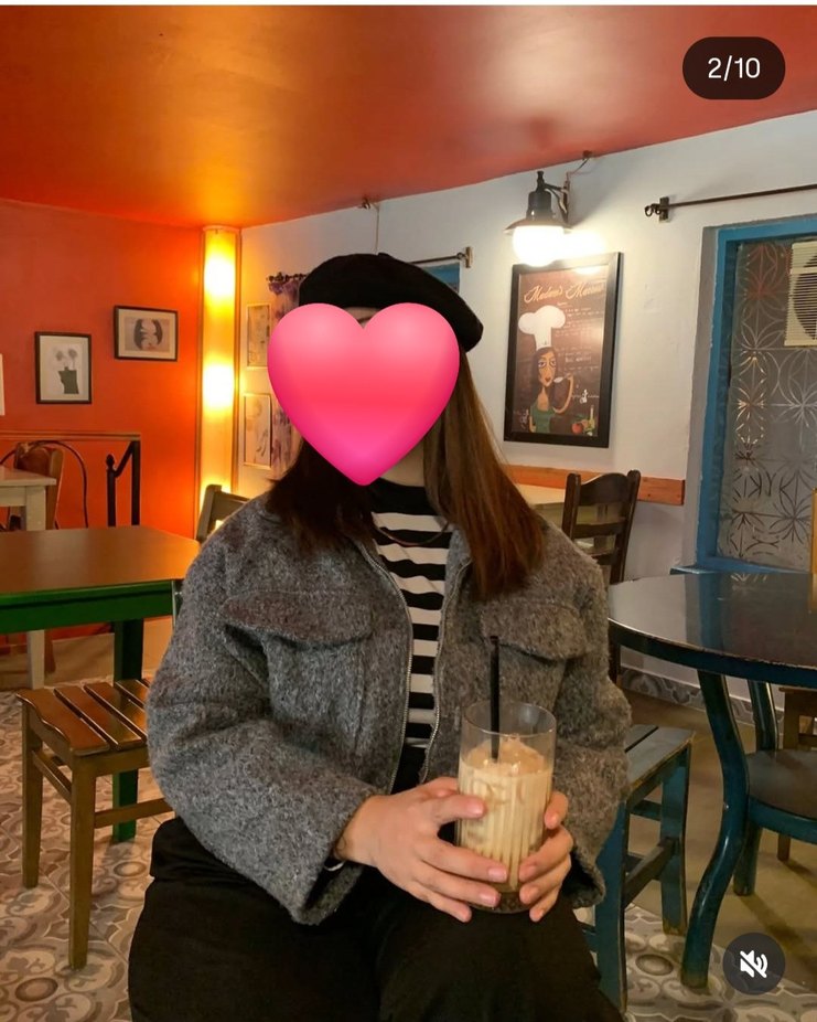 Gri yün ceketin bol kesimi, kabarık uzun kolları ve çentikli yaka detayı vardır. İnce zebra deseniyle romantik akşamlar için şık ve rahat bir seçimdir.