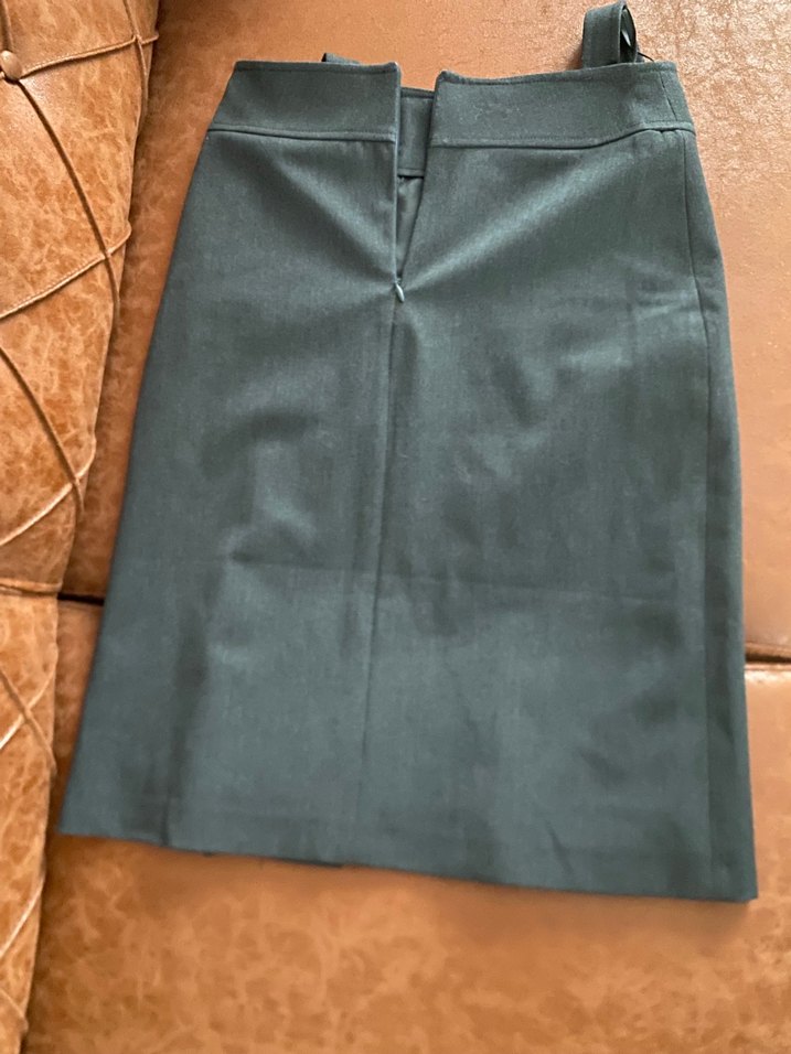 Gri midi kalem etek, kemerli ve normal kesimdir. Düz ve iş ortamına uygun, sentetik pürüzsüz kumaştan üretilmiştir.