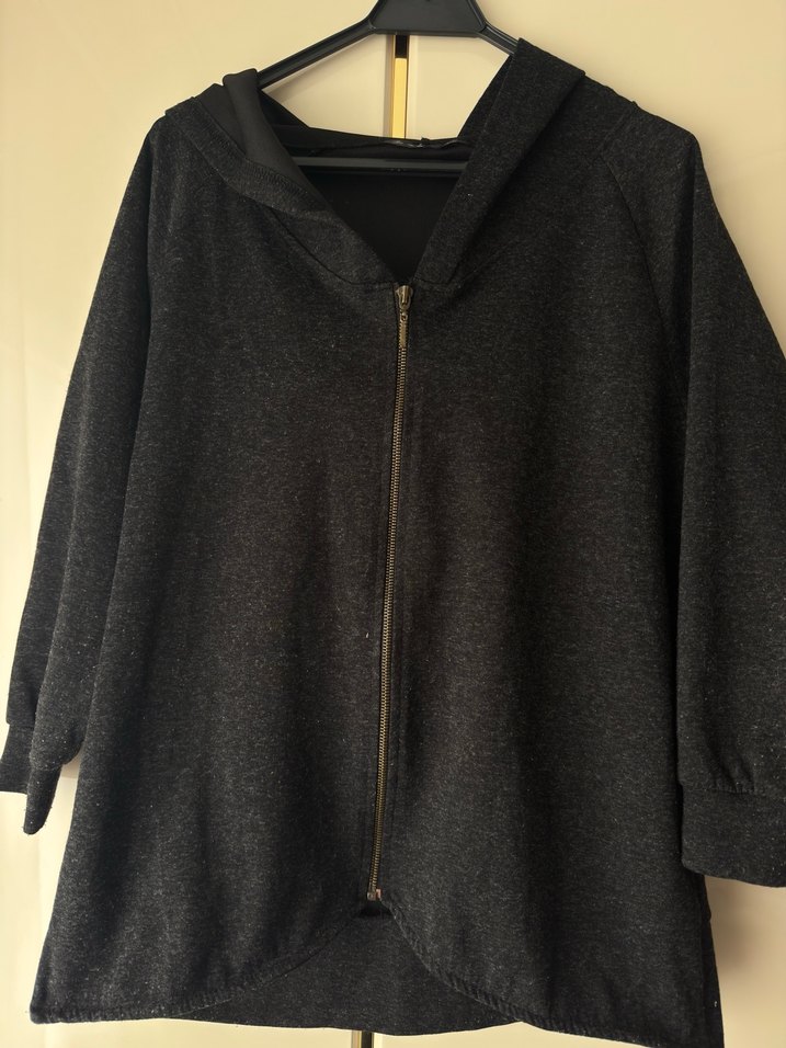 Gri midi uzunlukta hırka , fermuarlı ön, uzun kollu ve yuvarlak yaka detaylarına sahip. Rahat kesimli ve yumuşak, sıcak bir kumaştan üretilmiştir.