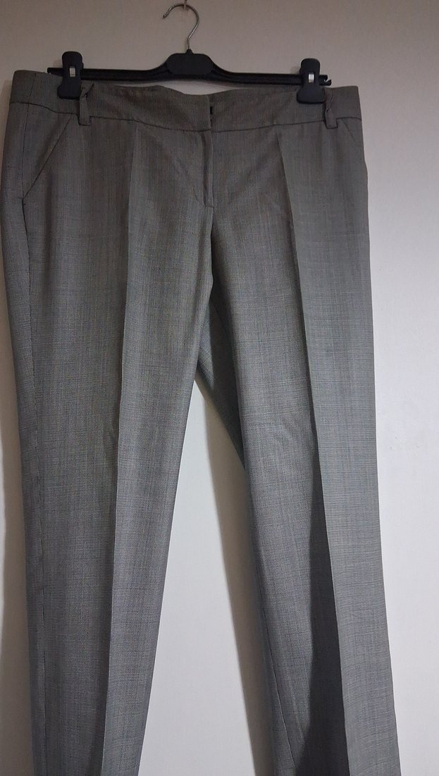 Gri keten kumaştan yapılmış, pileli ve midi boyda, regular fit kadın pantolon. Ofis ve gündelik iş stili için uygundur. Normcore ve desensiz tasarıma sahiptir. boy 95 bel 45cn hiç bir deformasyonu yok yeni gibi