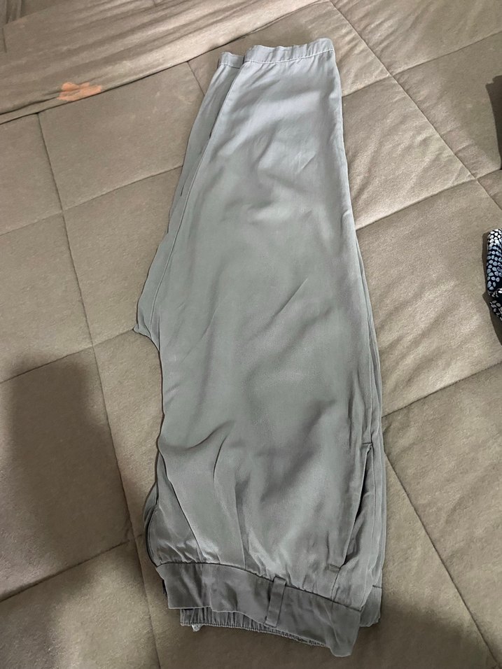 Gri renk, keten kumaştan yapılmış, midi boy ve salaş kesim pantolon. Dökümlü tasarımıyla günlük kullanım için uygundur. Minimalist ve sade tarzda.