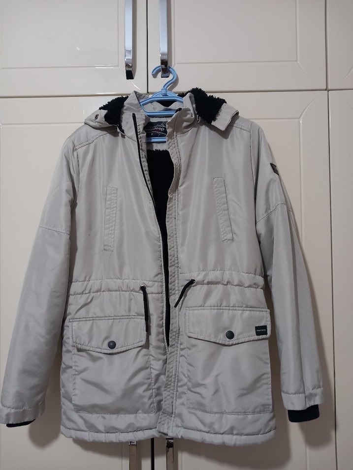 Gri renkte, kemerli ve normal boyda mont. Yumuşak ve sıcak kumaştan, uzun kollu ve regular fit. Sokak stilinde, dış mekan kullanımı için uygun defosu yok